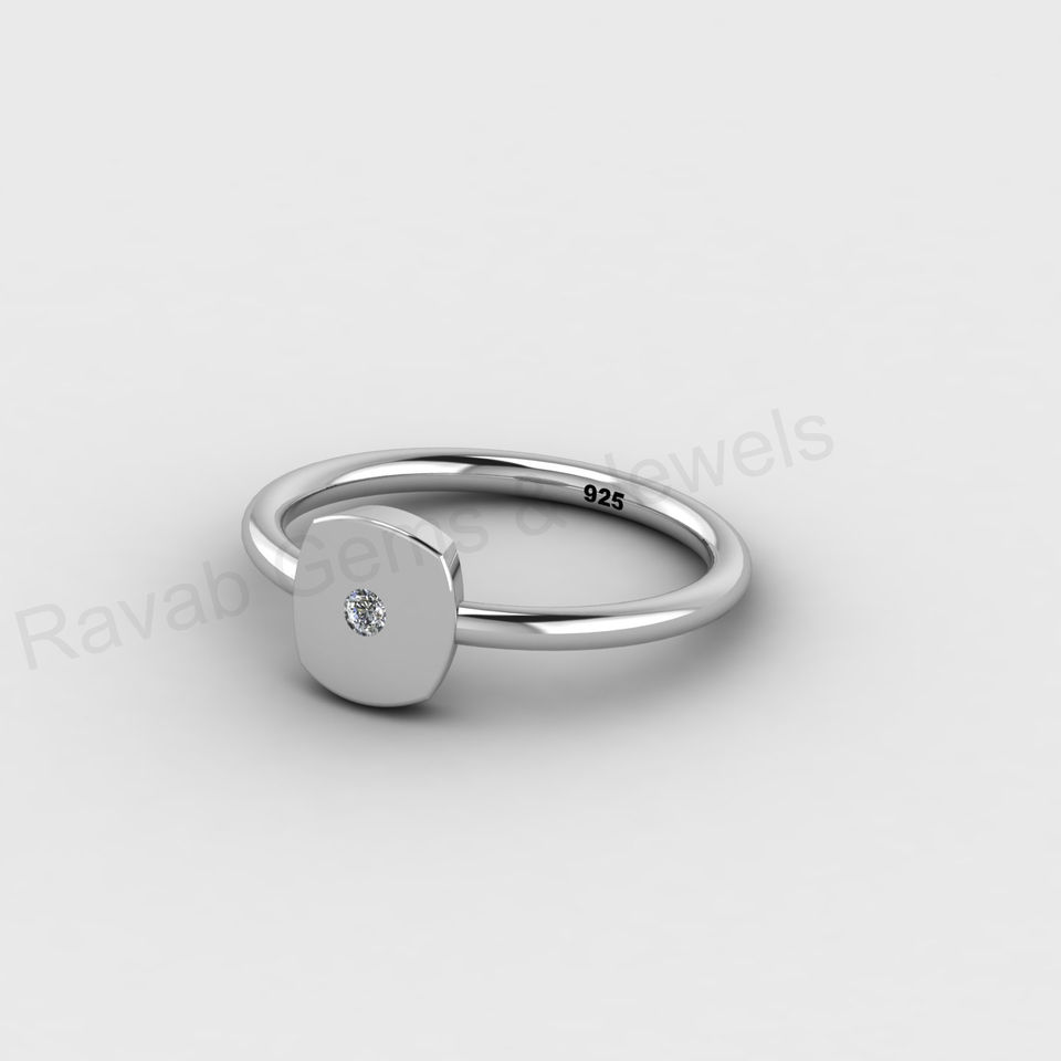 Sterling Silver Cushion Shaped Rings With Round CZ