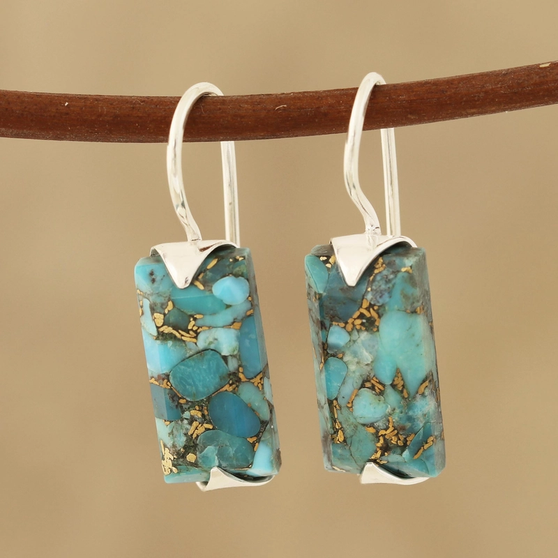 Beautiful 925 Solid Sterling Silver Dangle Earrings Natural Blue Copper Turquoise Gemstone Turquoise Pear Hook Fashion Jewelry