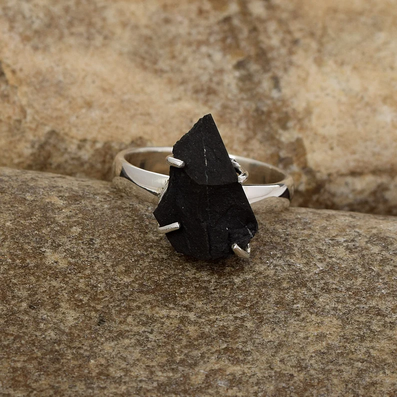 Beautiful 925 Sterling Silver Bohemian Christian Hot Selling Raw Shungite Gemstone Handmade Stacking Ring Christmas Gift