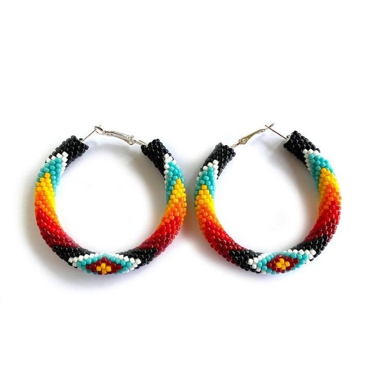 Beautiful Beaded Hoop Earrings With Summer Fashion Design Boho Beaded Hoop Earrings Handmade With Colorful Seed Beads