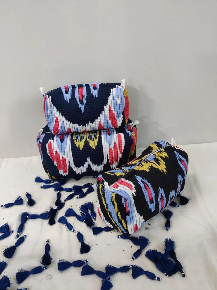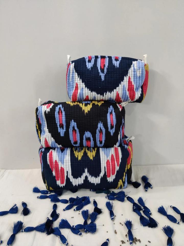 Beautiful Black 3-Pc Set Cotton Quilted Case Handmade Vintage Pattern Waterproof Eco-Friendly Durable Makeup Pouches Gifts