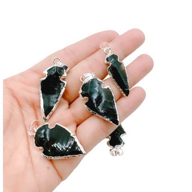 Beautiful Black Obsidian Healing Crystal Stone Silver Plated Arrowhead Pendant Necklace for Gemstone Jewelry or Souvenir Gift
