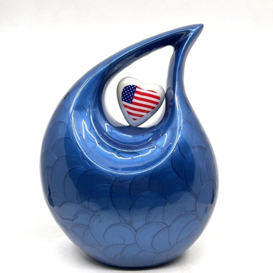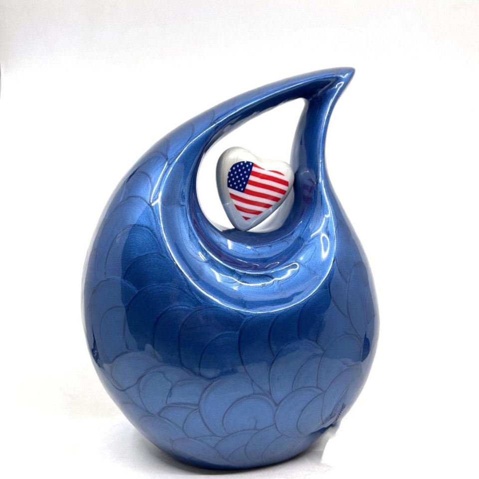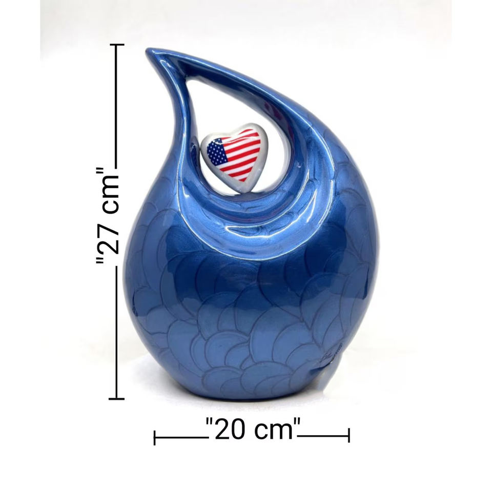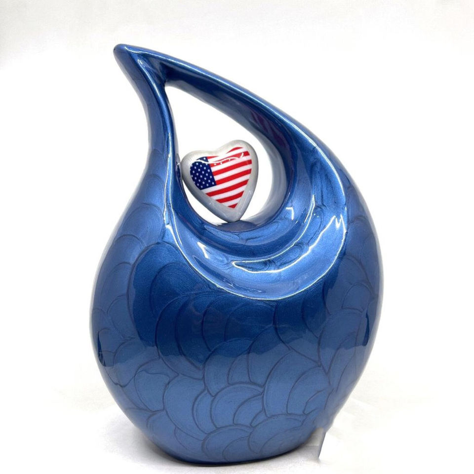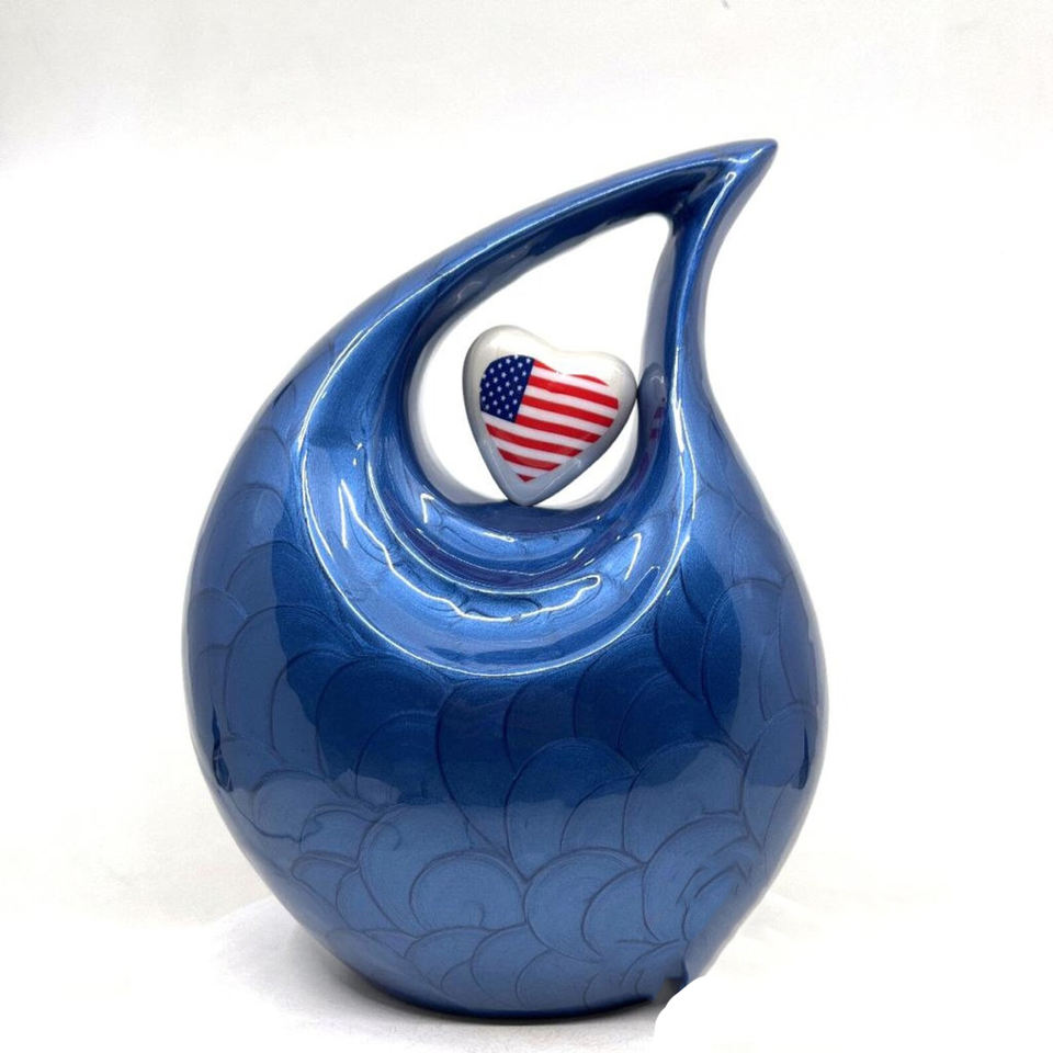 Beautiful Blue Modern Design Teardrop Aluminium Urn Adult Human Ashes Memorial Funeral Cremation Jar for Male or Female