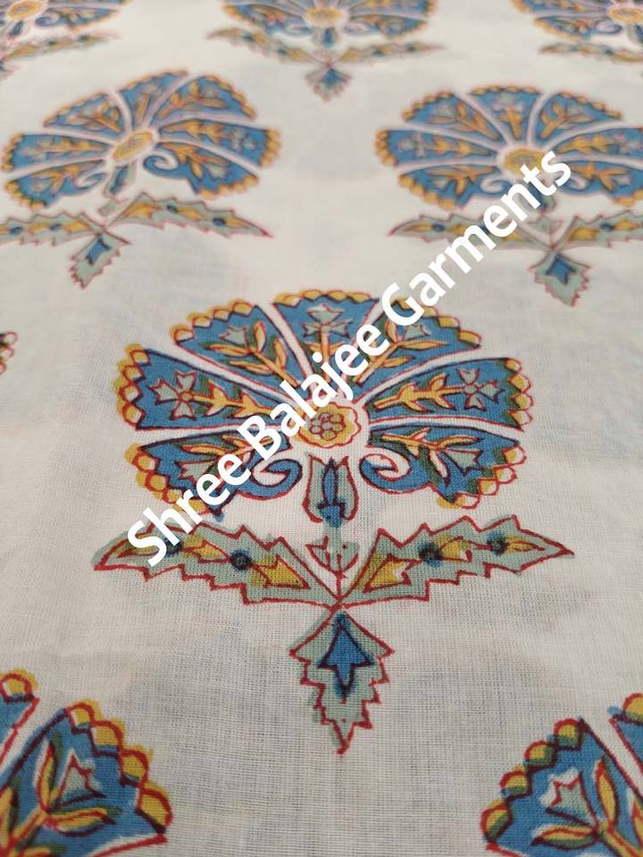 Beautiful Blueish Yellow Pure Cotton Fabric Indian Floral Hand Block Print for Women's Boys' Girls' Clothing Including Bags