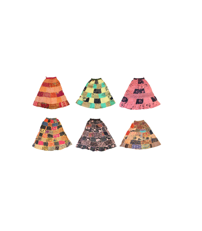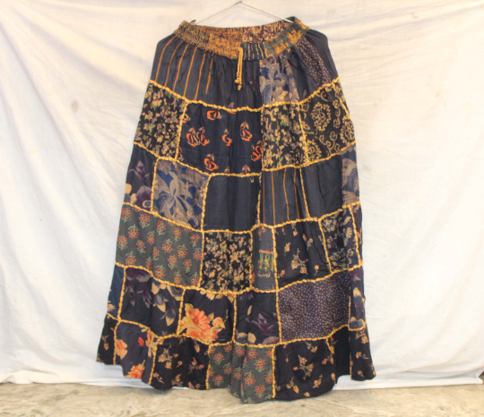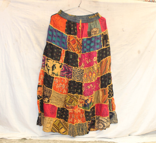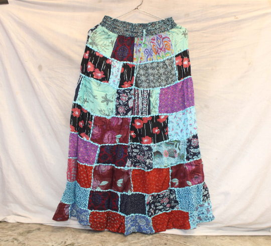 Beautiful Boho Fashion 100% Silk Cotton Long Skirt for Women Multi-Color Patch Work Dress Breathable and Comfortable