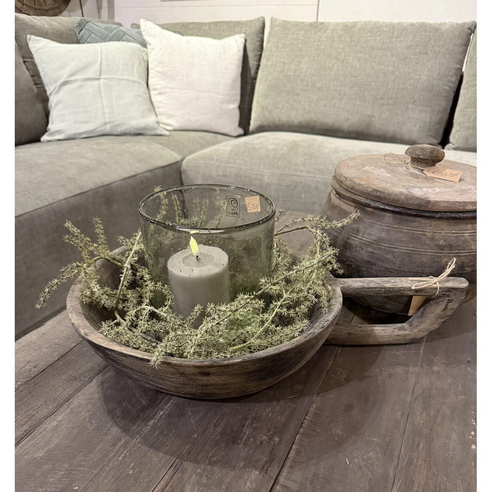 Beautiful Brown Wood Round Salad Bowl with Handle 12-14 Inch Elegant Salad Set