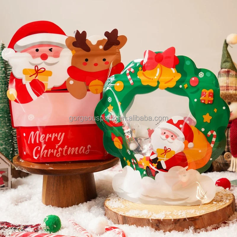 Beautiful Christmas Stocking Merry Sock Shaped Plastic Frost Window Transparent Pouch Bags Doypack Packaging With Zipper Lock