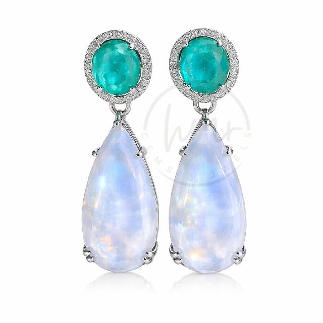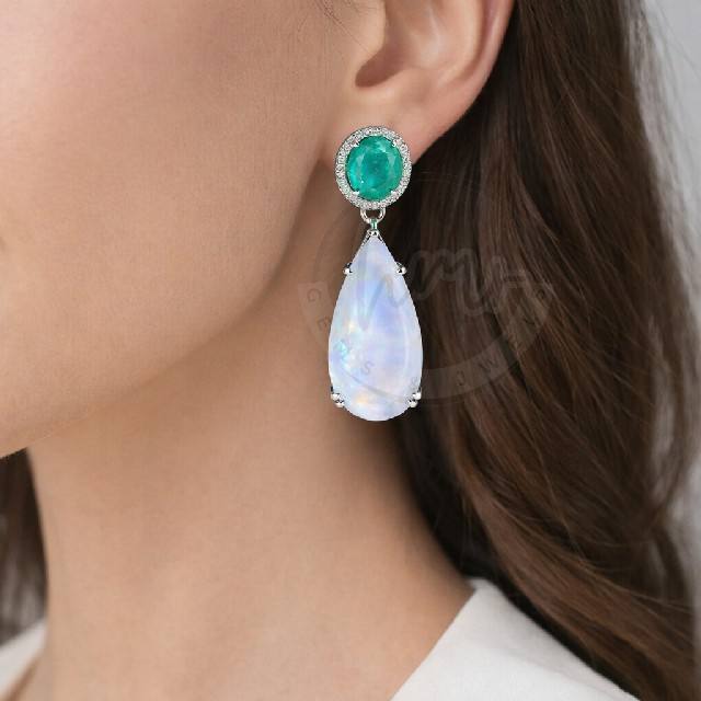Gemstone:Rainbow Moonstone and Hydro emerald