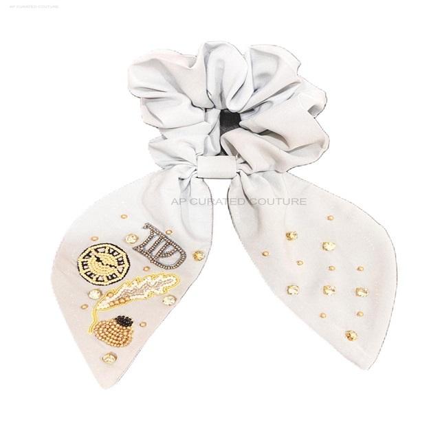 Beautiful Customized Indian Hand Embroidery Seed Beaded Scrunchies Halloween Hair Accessory with Custom Beaded Design