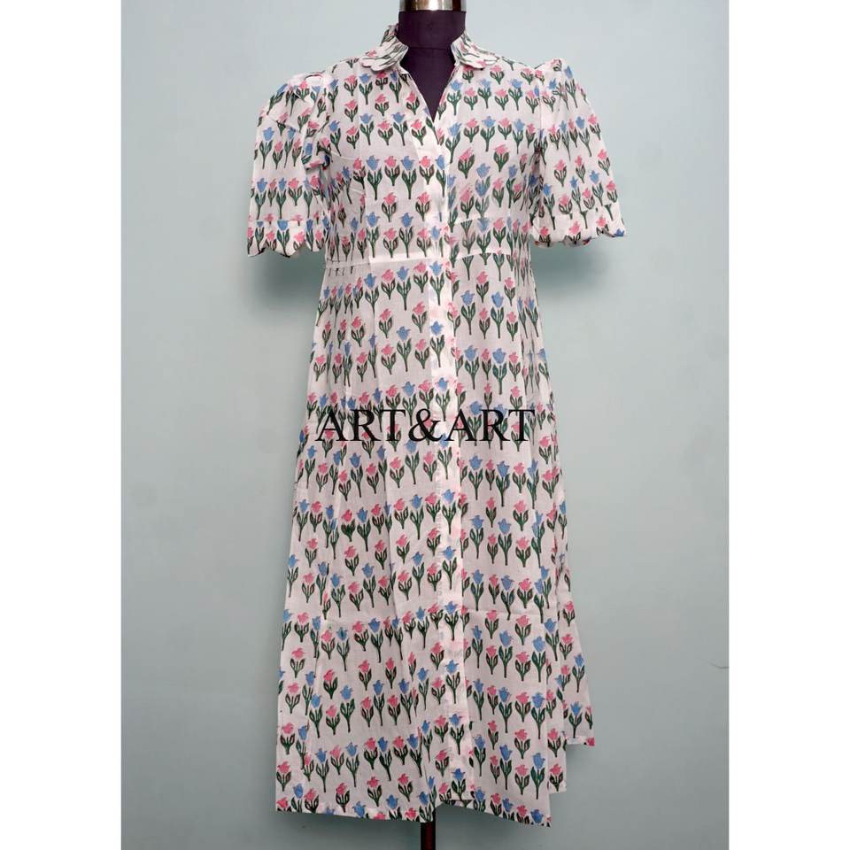 Beautiful Cute Sweet Summer Midi Dress 100% Cotton Digital Printed V-neck Short Sleeve A-Line Silhouette Party Wear Pockets