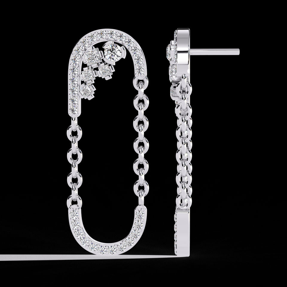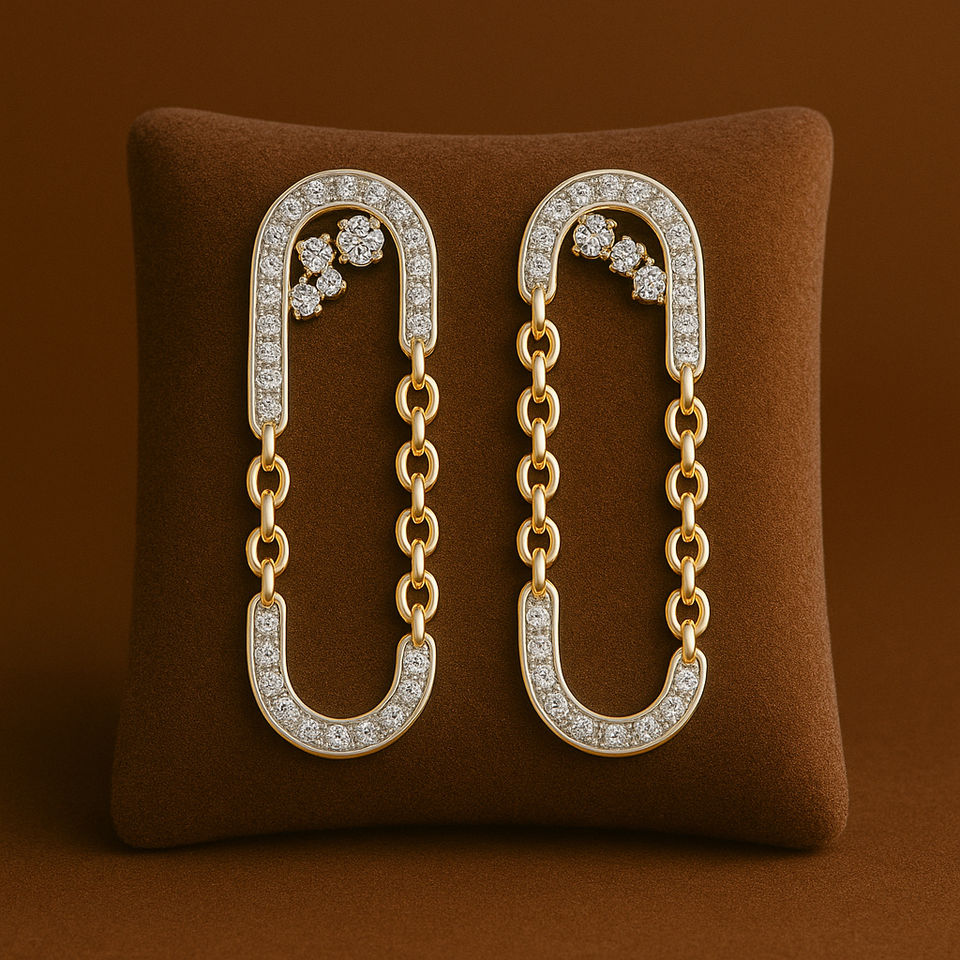 Beautiful Design 14k Solid Gold Long Dangling Drop Chain Earrings With Moissanite Diamond at Bulk Prices