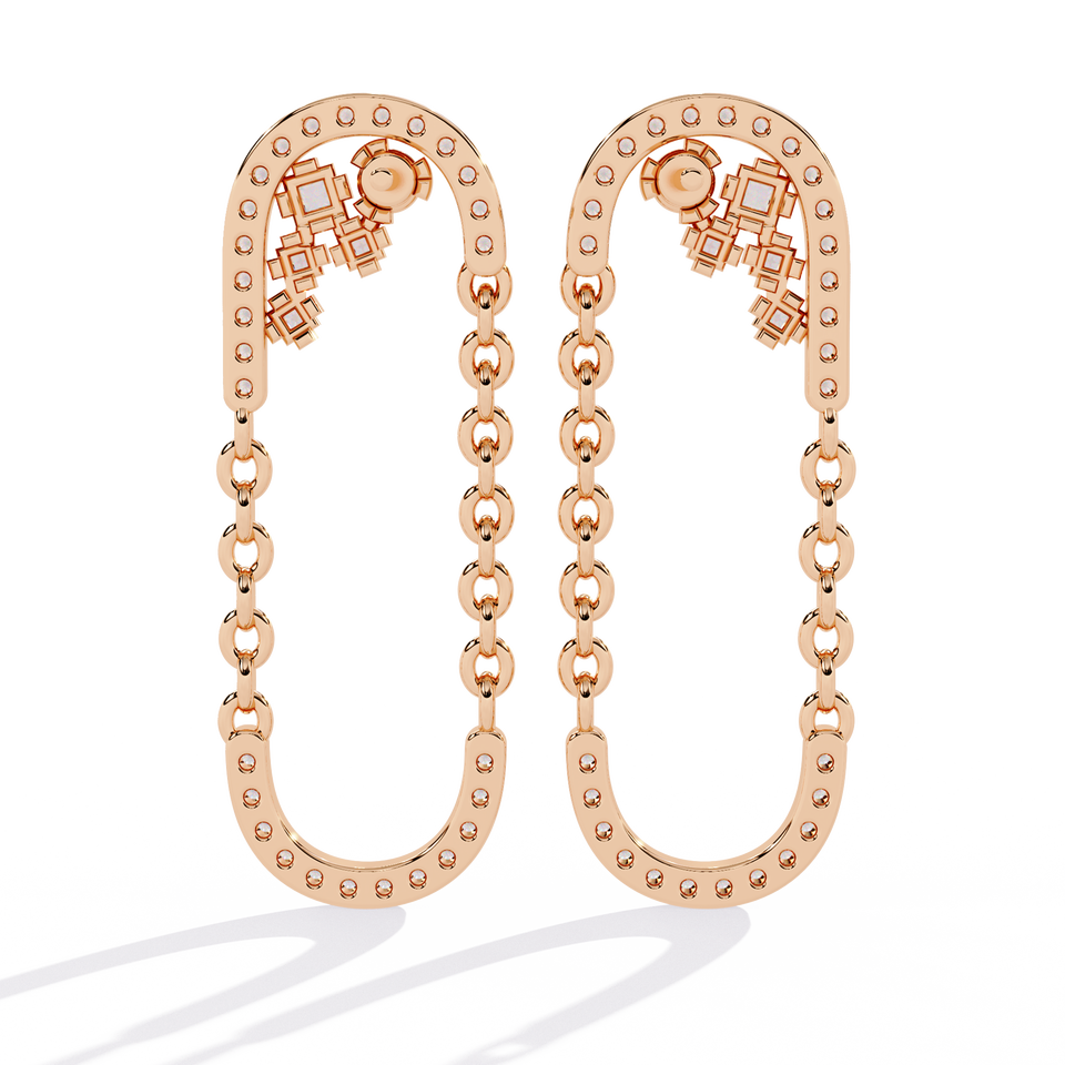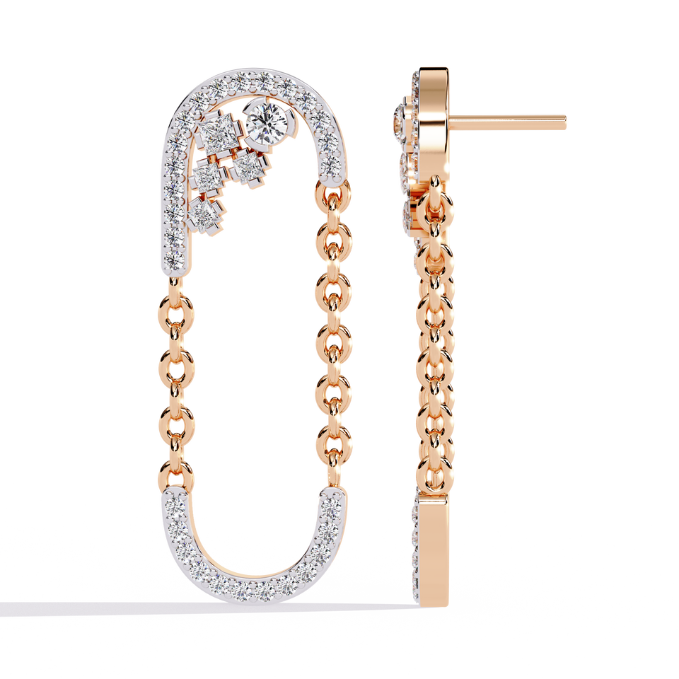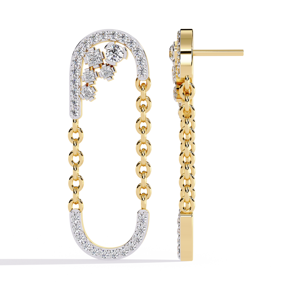 Beautiful Design 18k Solid Gold Long Dangling Drop Chain Earrings With Lab Grown Diamonds at Bulk Prices
