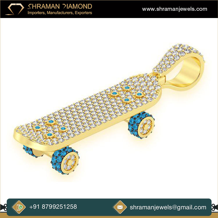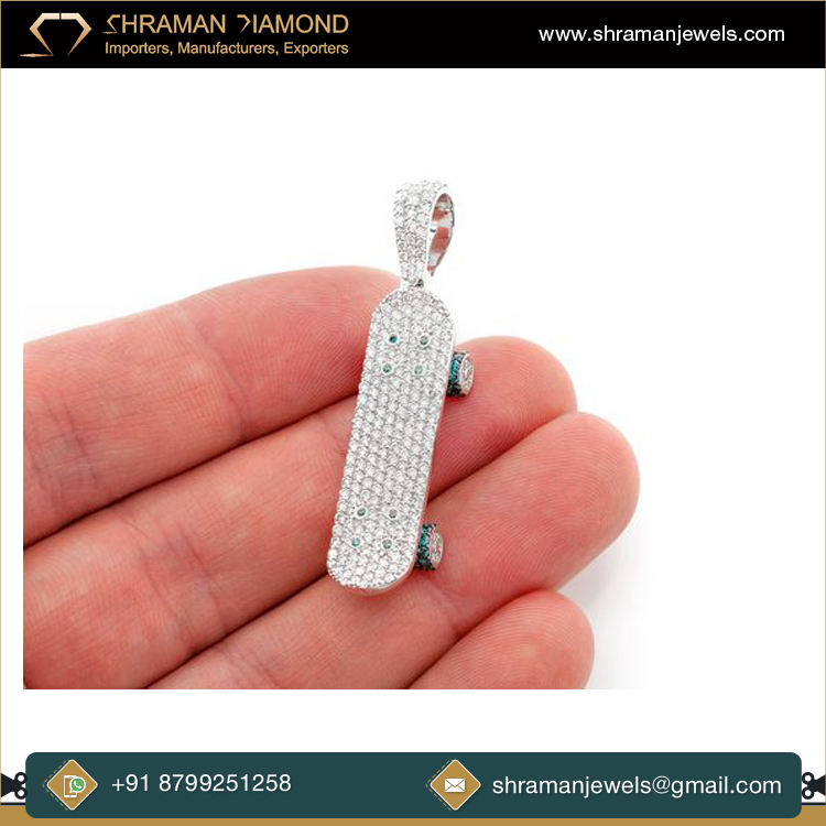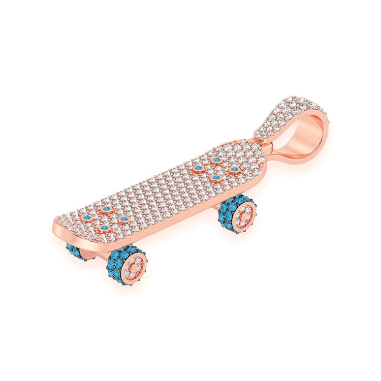 Trendy Minimalist Custom 925 Silver Yellow Gold Plated Lab Grown Diamond Iced Skateboard Sports Pendant Necklace Gift for Kids