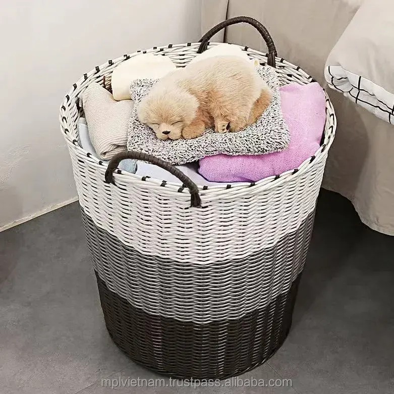 Beautiful Design Eco-Friendly Sustainable Poly Rattan Woven Handmade Multifunction Natural Color Clothing Storage Laundry Basket