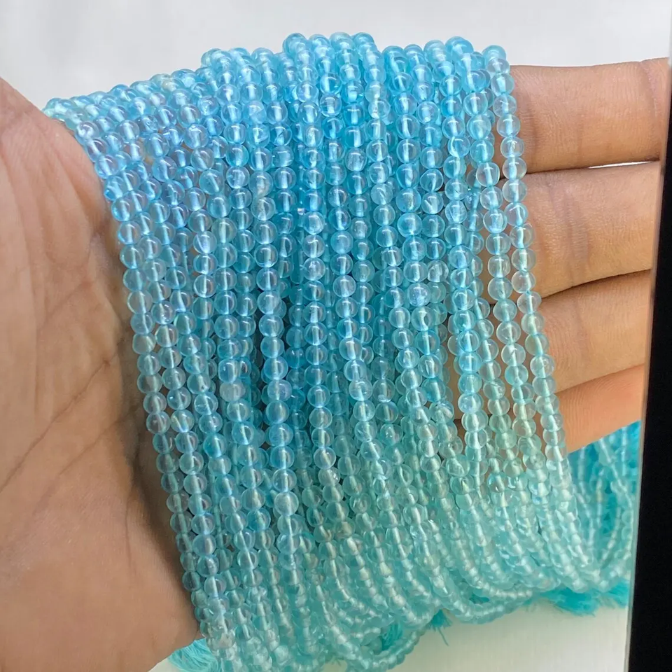Beautiful Design Natural Sky Blue Apatite 4mm Smooth Round Gemstone Loose Beads Best Selling Original Apatite At Lowest Price