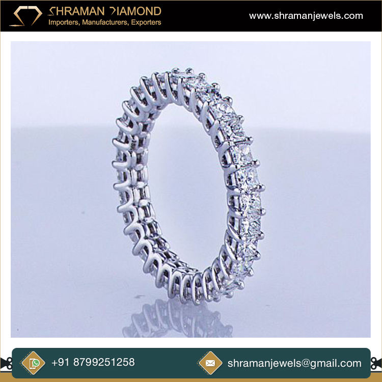 Beautiful Design Princess Cut Moissanite Diamond Wedding Ring Band 925 Silver Eternity Dainty Minimalist Bridal Ring for Women