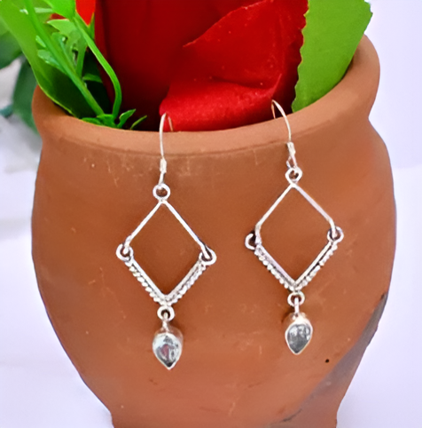 Beautiful Designer 925 Sterling Silver Pear Topaz Dangle Earrings Silver Plated Romantic Fashionable Earring for Wedding, Gift.