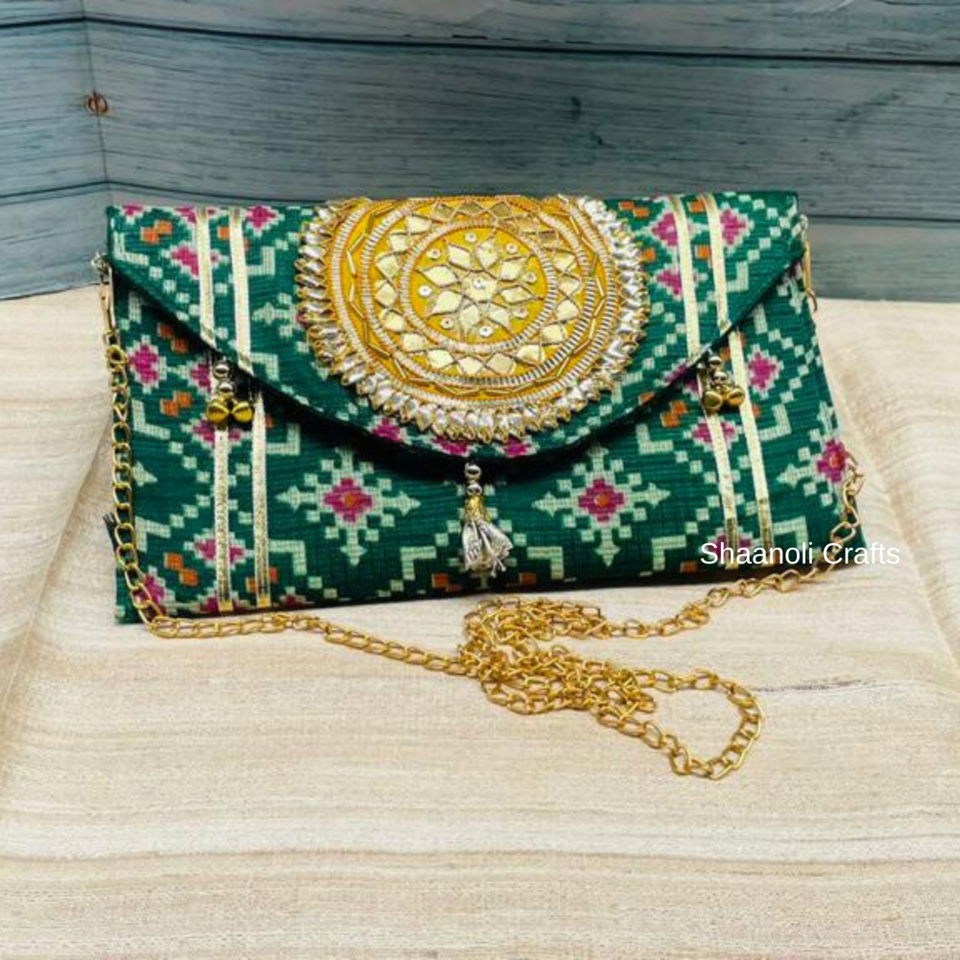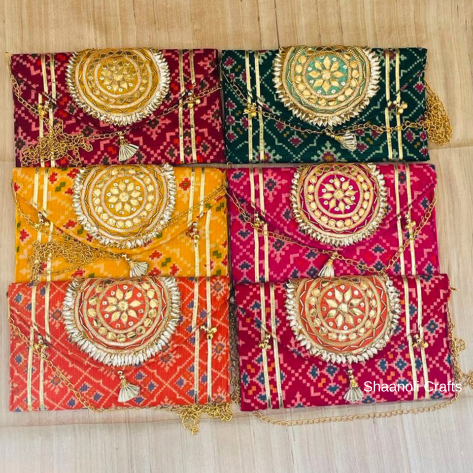 Beautiful Designer Gotta Patti Work Sling Bag With Shoulder Chain Pouches Handbags for Womens and Girls in Wedding Party Favors