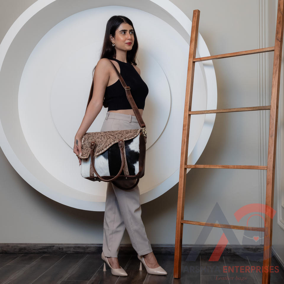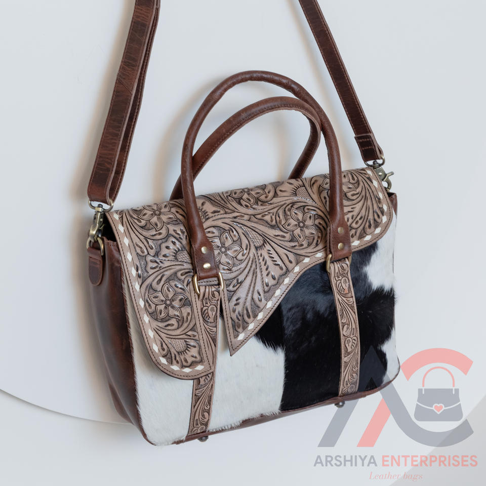 Type:Western Hand Tooled Fur Leather Briefcase Shoulder Bag