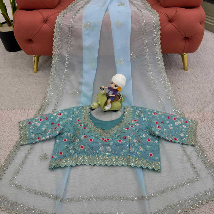 Beautiful Designer Saree With Thread & Sequence Work and Blouse