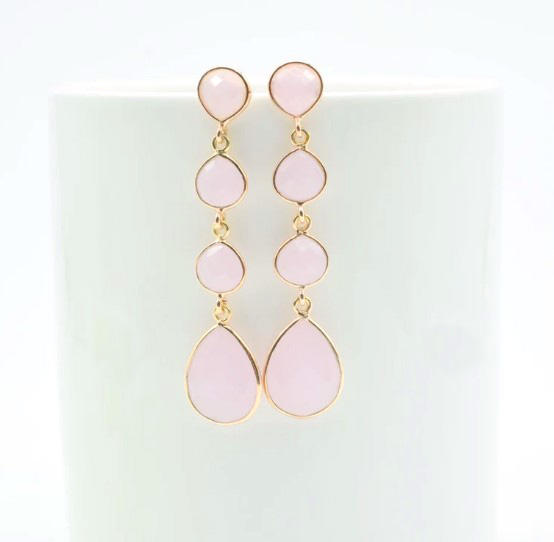 Beautiful Designer pink Stone Earring Dainty Four Gemstone pink Chalcedony Earring 18k Gold Plated Bezel Setting studded Drops