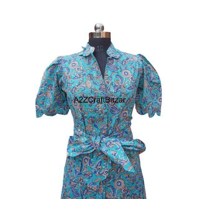 Beautiful Eco-Friendly Boho V-neck Short Sleeve Knitted Bodycon Midi Dress Pure Cotton Indian Block Print Earthy Nature Goddess