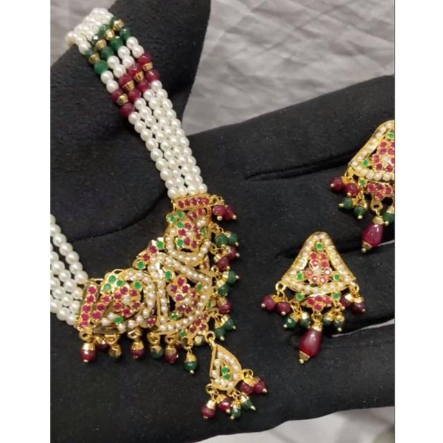 Beautiful Elegant Traditional Jadau Pearl Look Gold Plated Necklace Set with Earrings Designer Necklace Set For Women