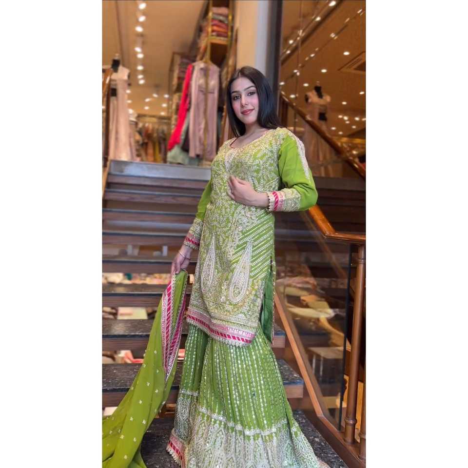 Beautiful Embroidered Sharara Top and Dupatta Indian & Pakistani Clothing