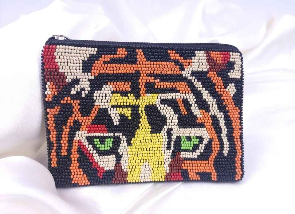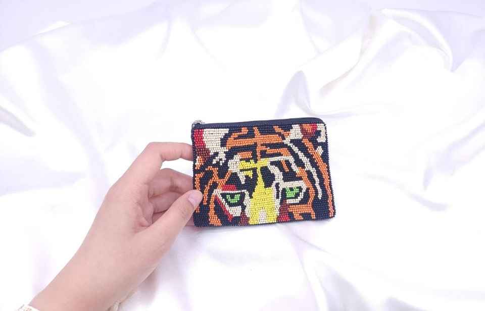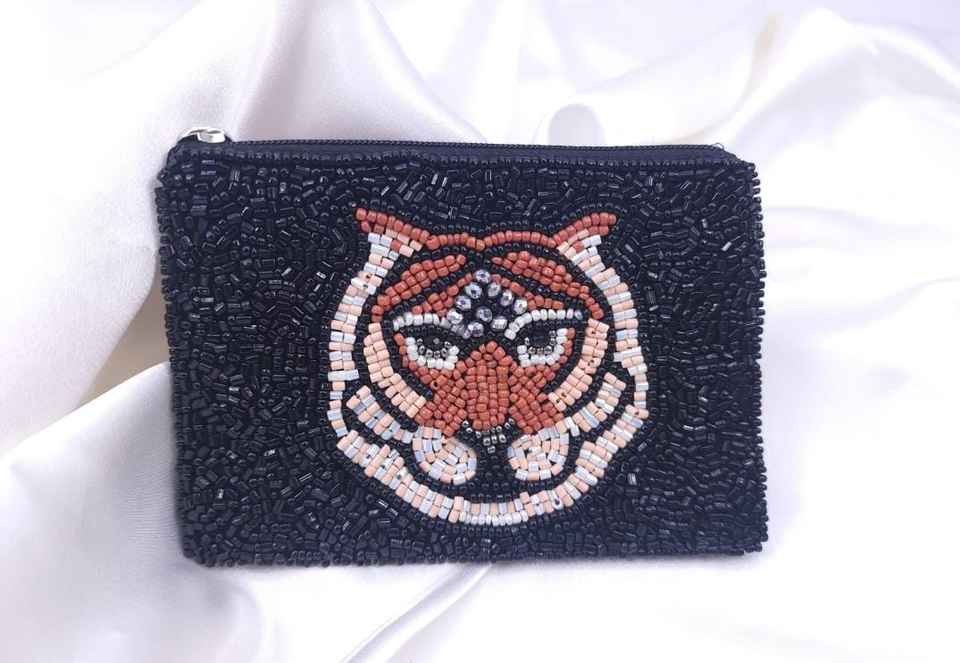 Beautiful Ethnic Hand Embroidered Coin Purse With Animal Tiger Embroidery on It