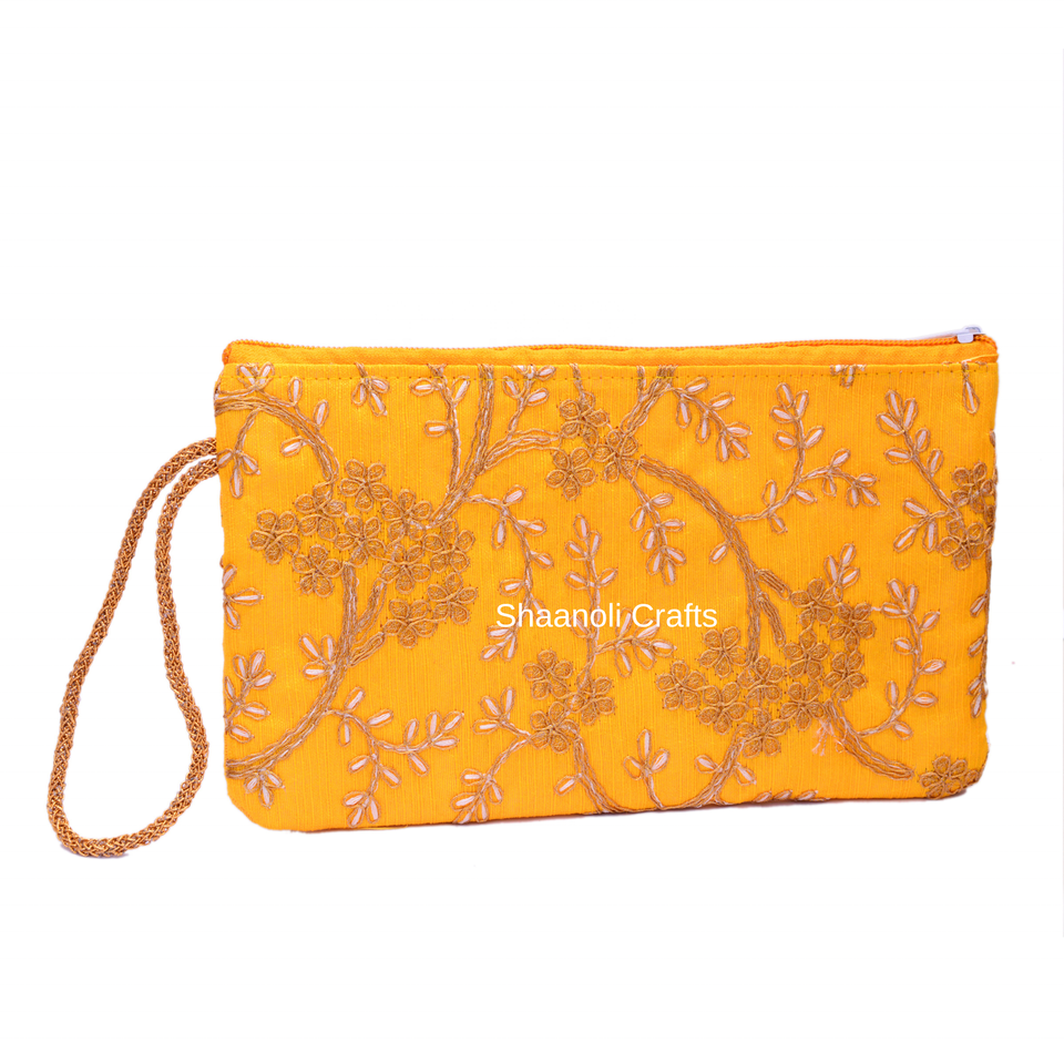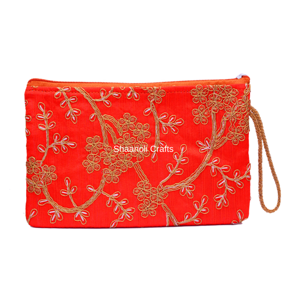 Beautiful Ethnic Slim Mobile Pouch Zardozi Embroidery Pattern Polyester Lining Button Closure Wedding Favor Gift Bag for Women