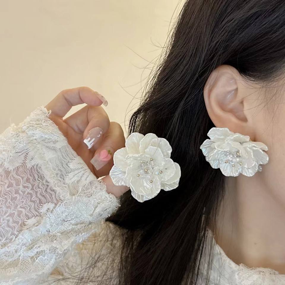 Beautiful Fashion Flower Shaped Stud Earrings Holiday Beach Jewelry 3D Exaggerated Petal Earrings