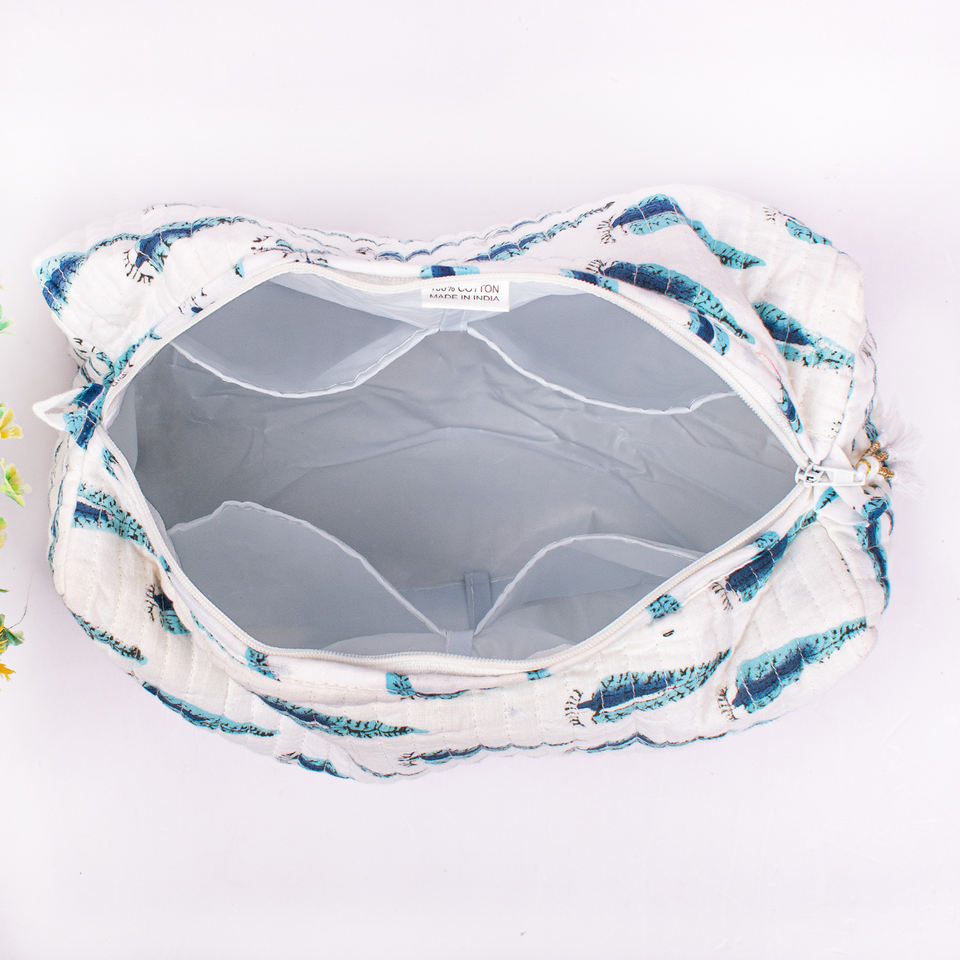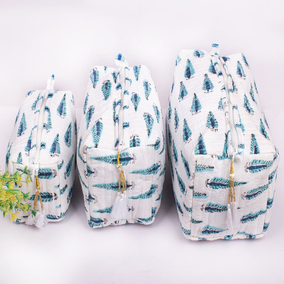 Beautiful Fashion Handmade Cotton Quilted Zipper Luxury Unisex Portable Unique Design MakeupBag Cosmetic Multifunction Large