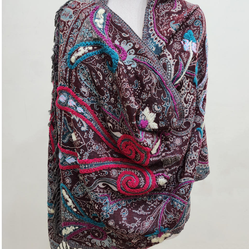 Beautiful Fashionable Pure Wool Jacquard Embroidery Handmade Shawl for Women & Girls Soft Winter Wear Traditional Scarves Shawls