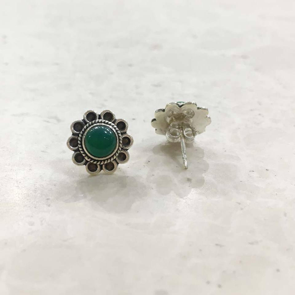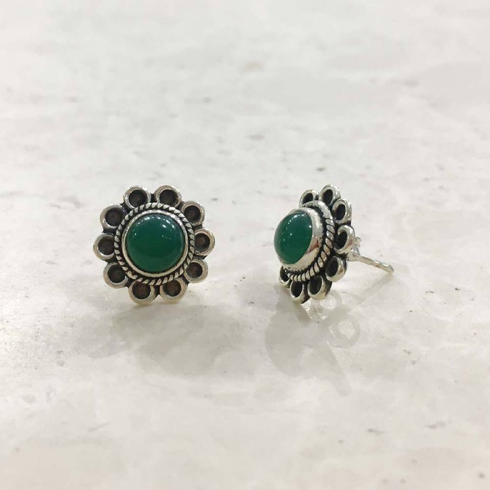 Keyword:Green Onyx Stone 925 Sterling Silver Studs