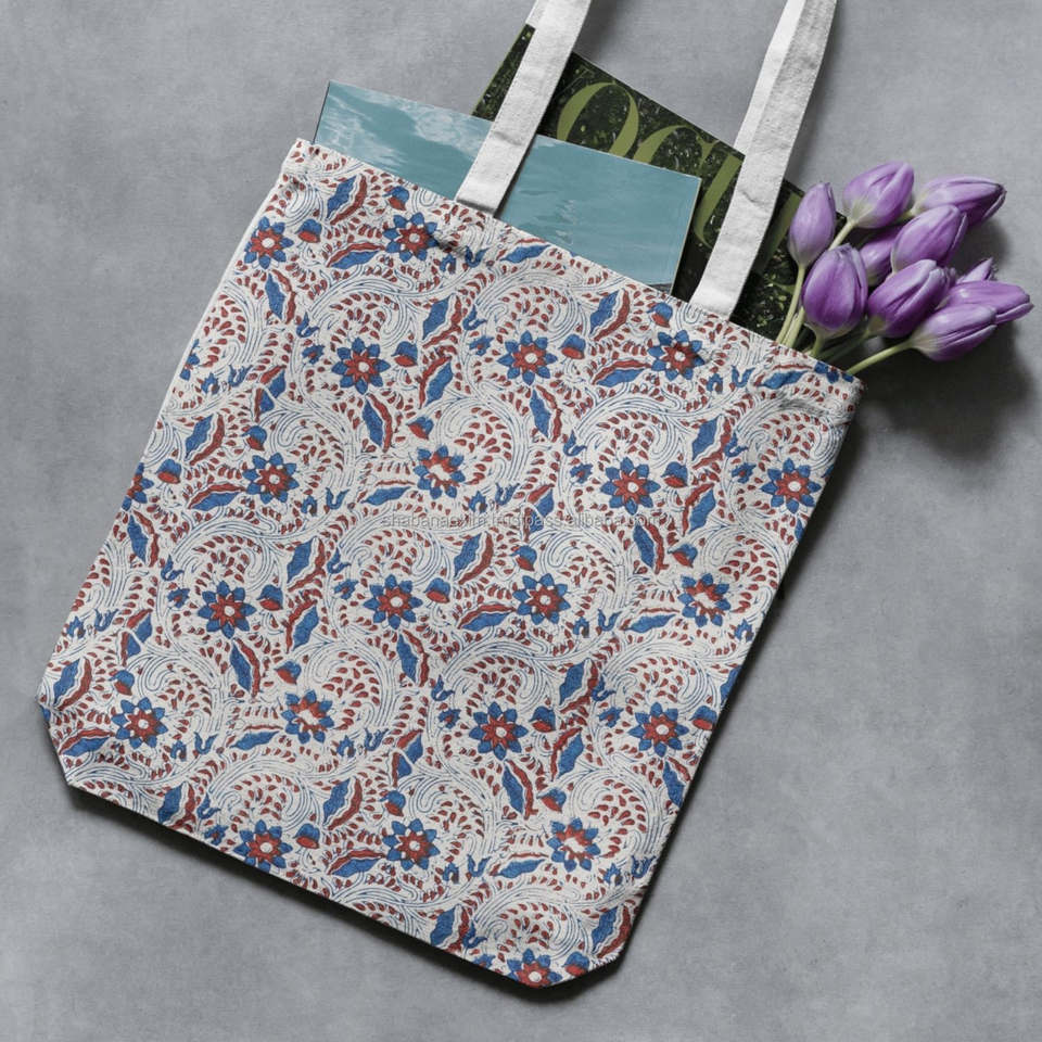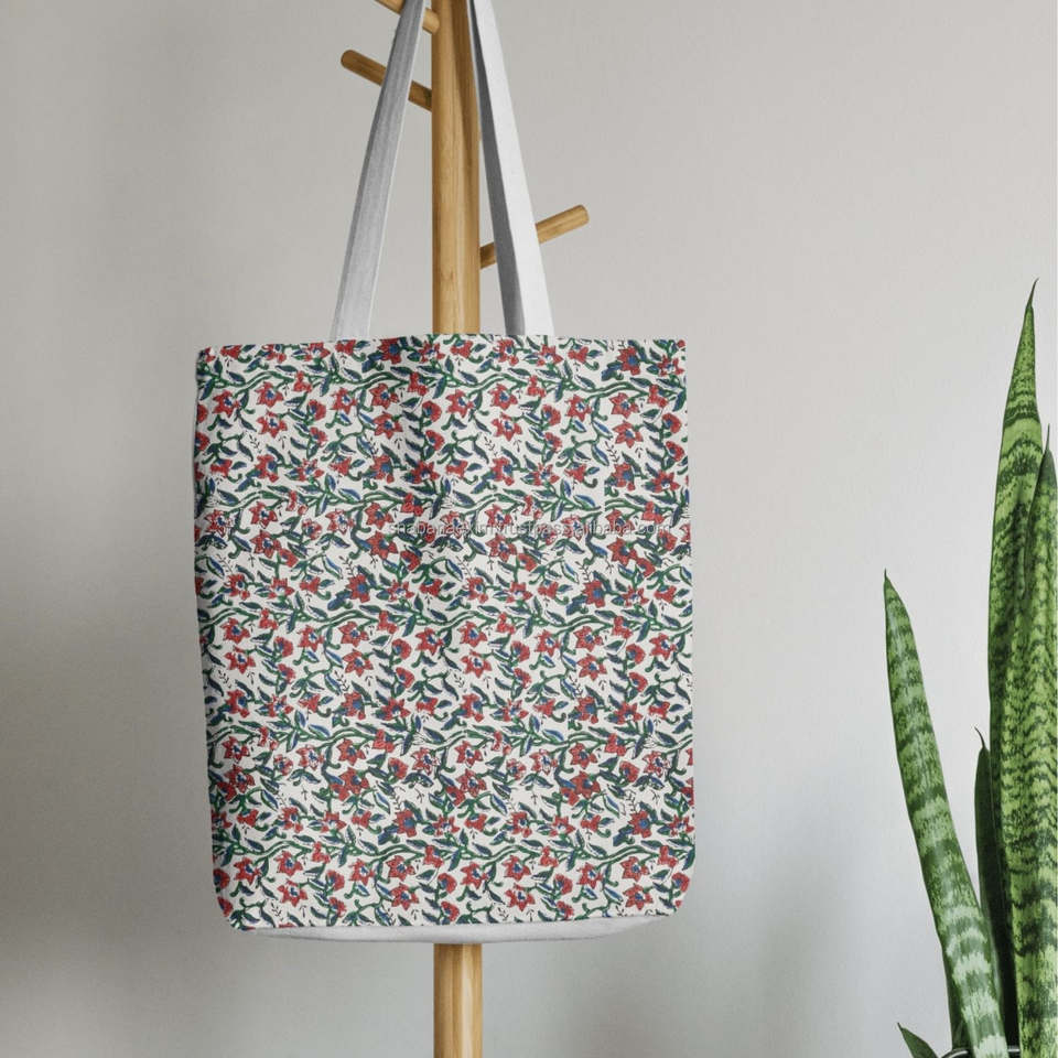 Beautiful Floral Pattern Block Printed Shoulder Bag Luxury Soft Cotton Sustainable Women Fashion Printed Handbags