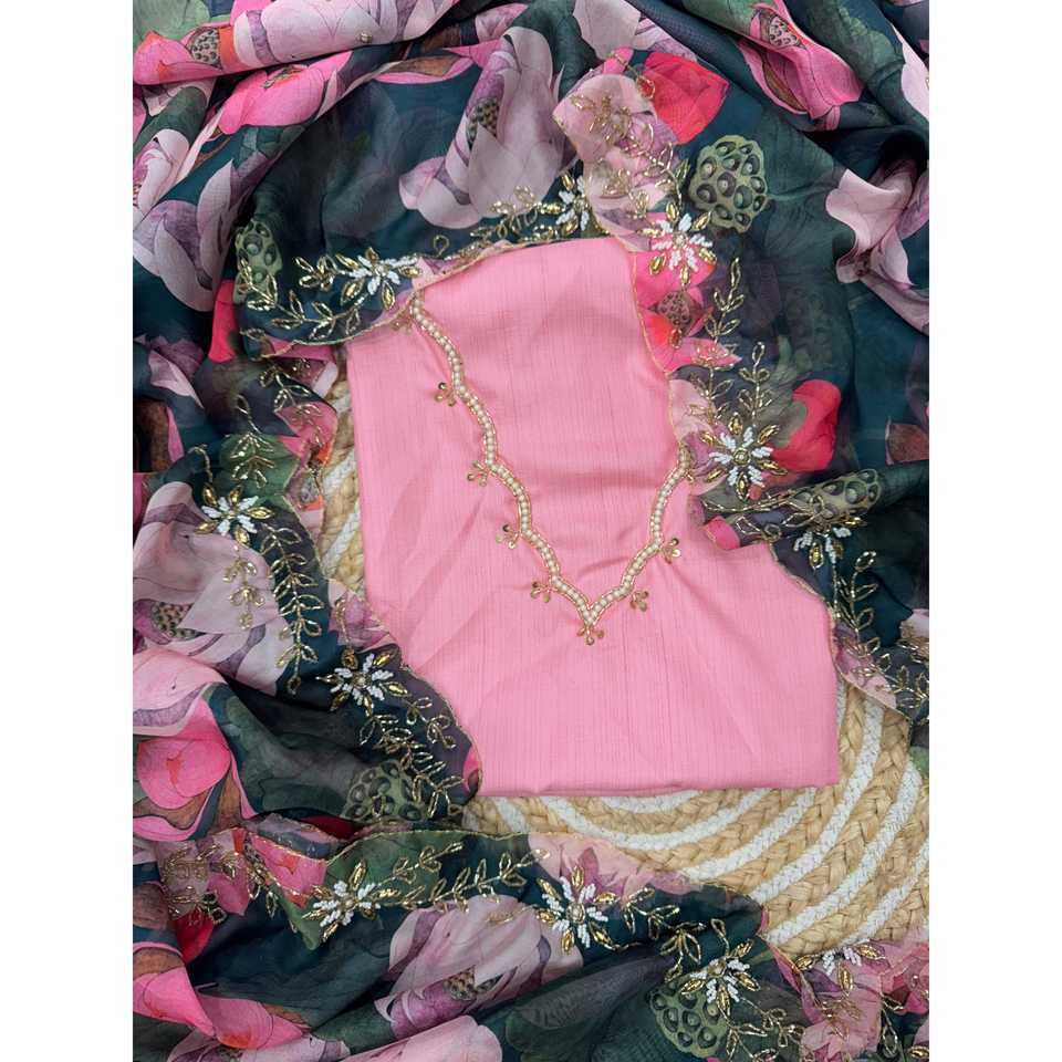 Beautiful Floral Print Saree with Pearls Handwork for Party Wear Featuring Indian & Pakistani Style Clothing