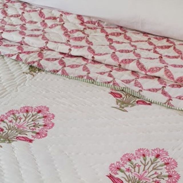 Beautiful Floral Printed Latest Design Kantha Quilt Manufacture Vintage Hand Block Cotton Patchwork Queen Size