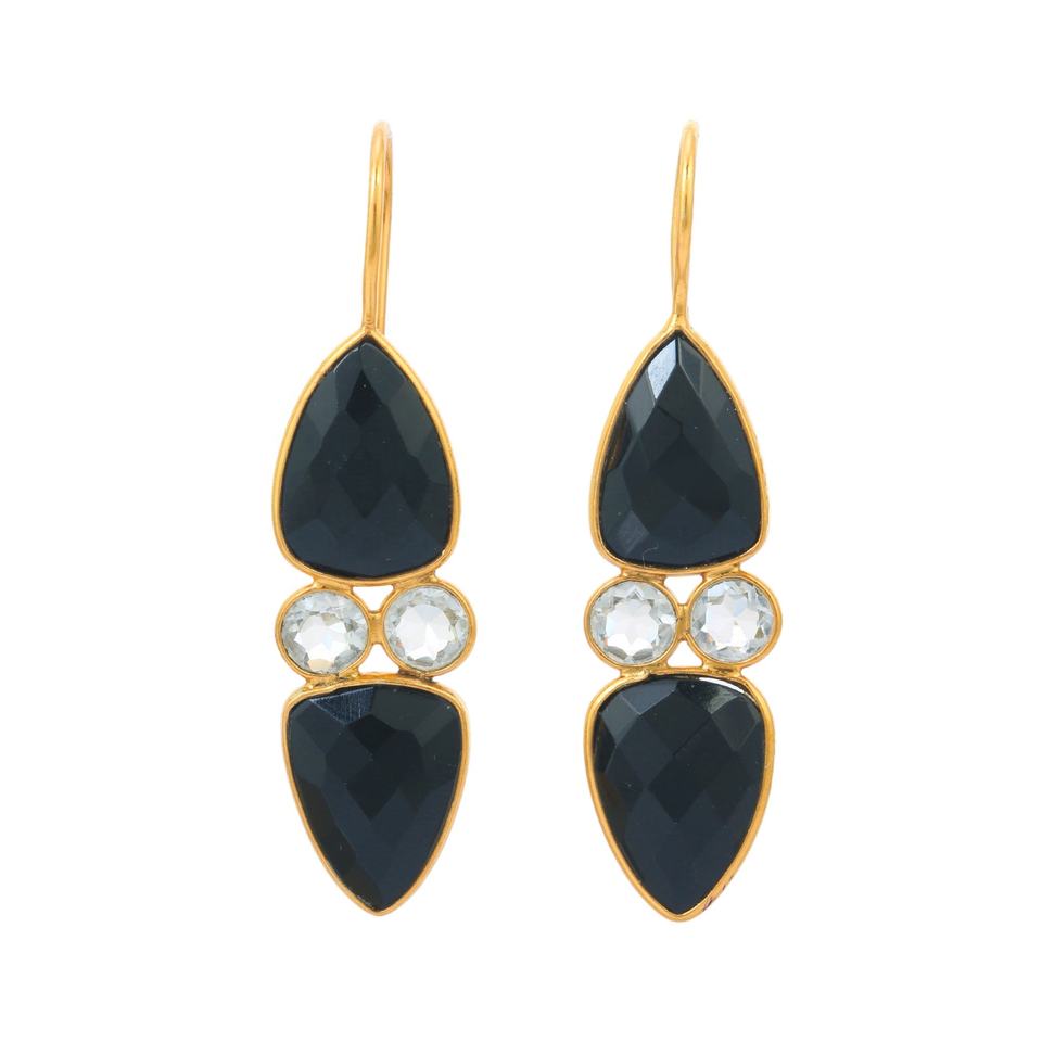 Beautiful Forever Natural Black Chalcedony Earrings Gold Plated Valuable Gemstone Trendy Style for Wedding or Gift
