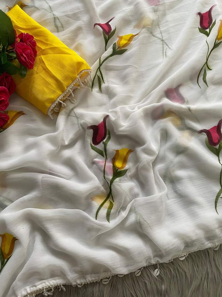 Product Name:Beautiful Georgette With Floral Print Beads Border Saree