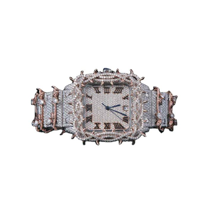 Beautiful Glossy Fashion Mens Diamond Thorn Watch Elegant Lightweight Double Soft Strap Sapphire Glass Waterproof Party