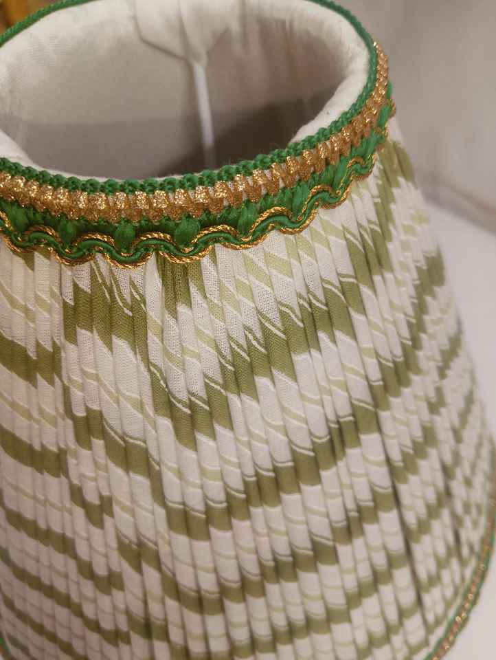 Beautiful Green Ikat Blend Linen Fabric Modern E27 Ring Frame Lamp Shades Lace Tassel Motif for Table Desk Lamp Light Covers