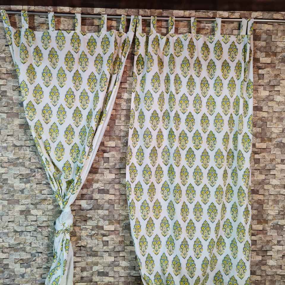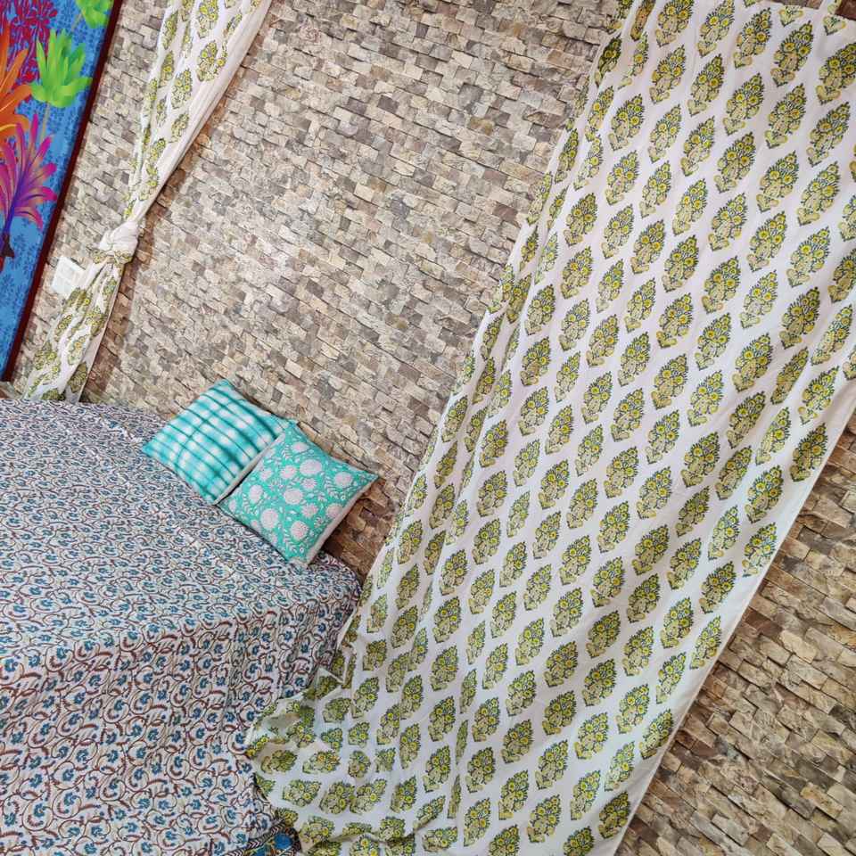 Beautiful Hand-Block Printed Solid Cotton Wave Curtains Valances 7-Pair Set Handmade Door Curtains Modern Luxury Design