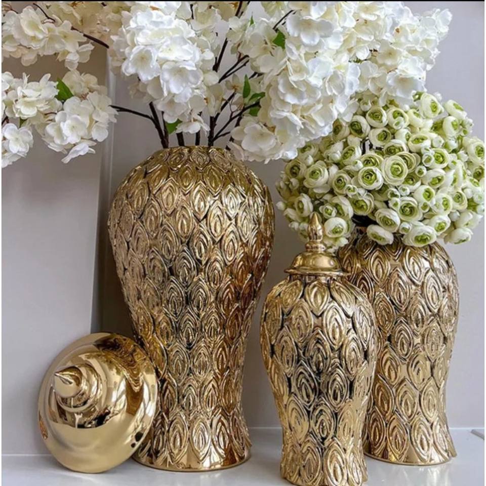 Beautiful Hand Curved Ginger Designed Metal Gold Finishing Flower Pots and Vases for Home Decor and Garden Supplies and Gifting