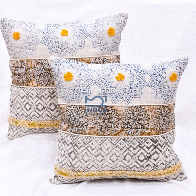 Beautiful Hand Tufted Dhurrie Cotton Linen Decorative Boho 45 X 45CM Square Cushion Cover