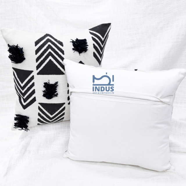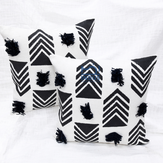 Beautiful Hand Tufted Dhurrie Cotton Linen Decorative Boho 45 X 45CM Square Boho Cushion Cover Block Printed Cushion Cover