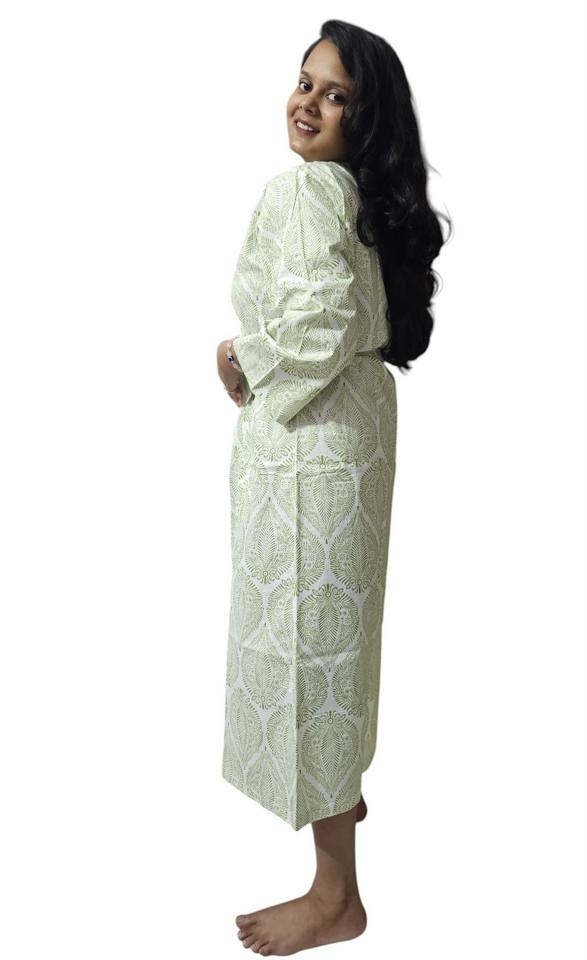 Beautiful Handblock Printed Cotton Bathrobe For Women with Belt, Size - 48 inch