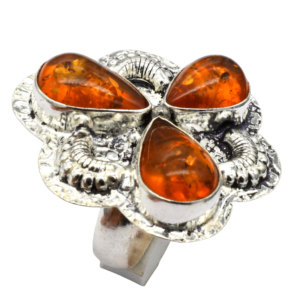 Beautiful Handcrafted Work Around Oval Cut Baltic Amber Gemstone Silver Ring Crafted From Silver-Plated-Brass Jewelry fashion