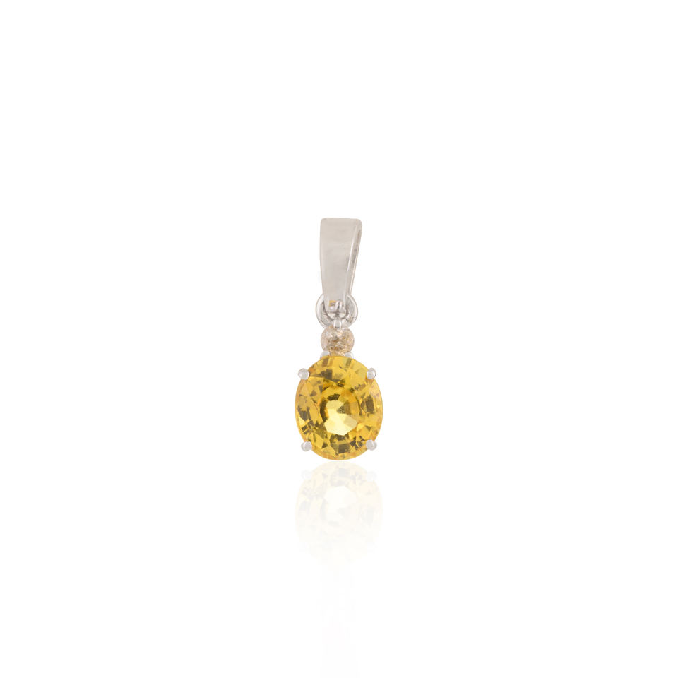 Beautiful Handmade 100% Natural Yellow Sapphire and Diamond Oval Shape Gemstone Pendant 18k Solid White Gold Jewelry for Women