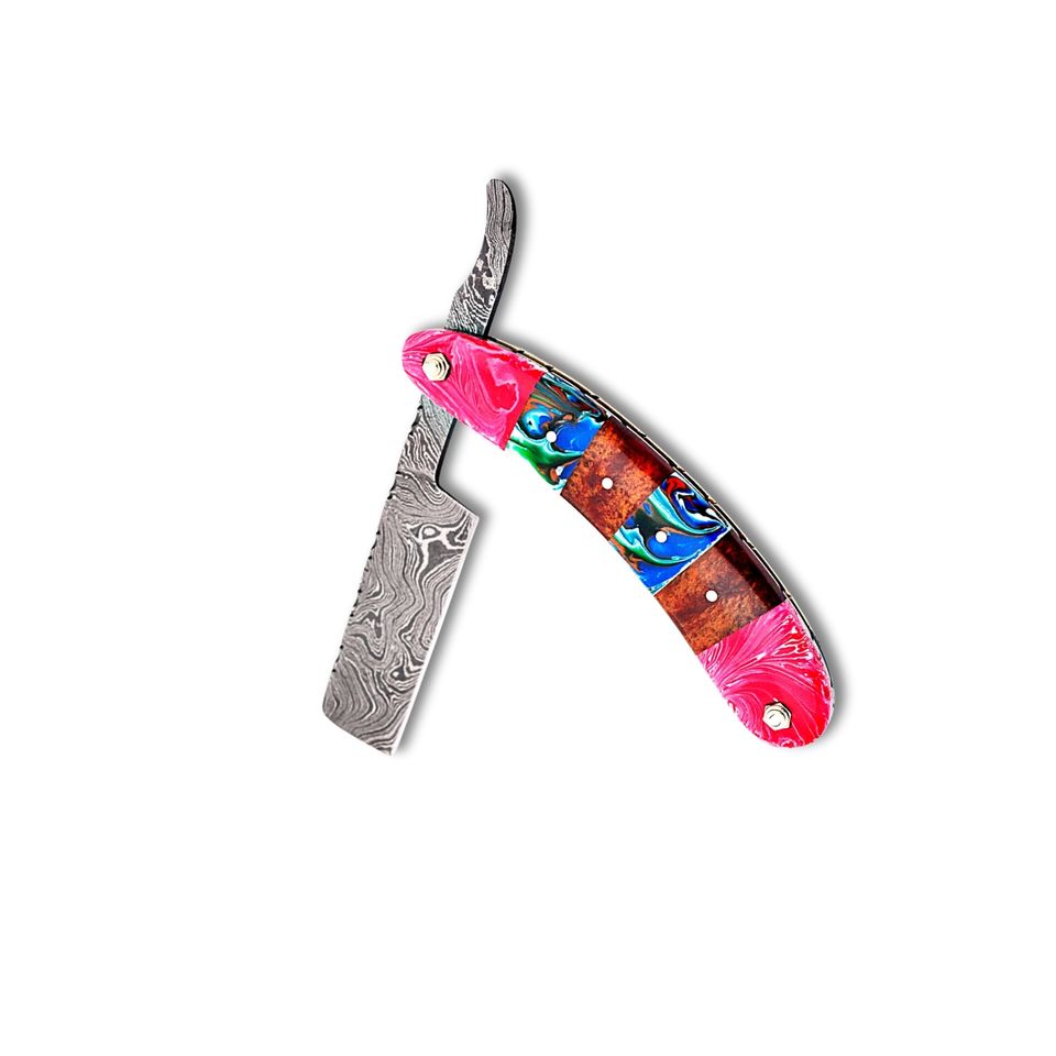 Beautiful Handmade Damascus Steel Barber Razors Multi-Colored Safety Features Sharp Blade Resin Rose Wood Spacers DIY Industrial