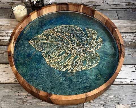 Beautiful Handmade Luxury Epoxy Resin Wooden Tray with Unique Glossy Finish for Wedding Dining Coffee Snacks Wine Parties